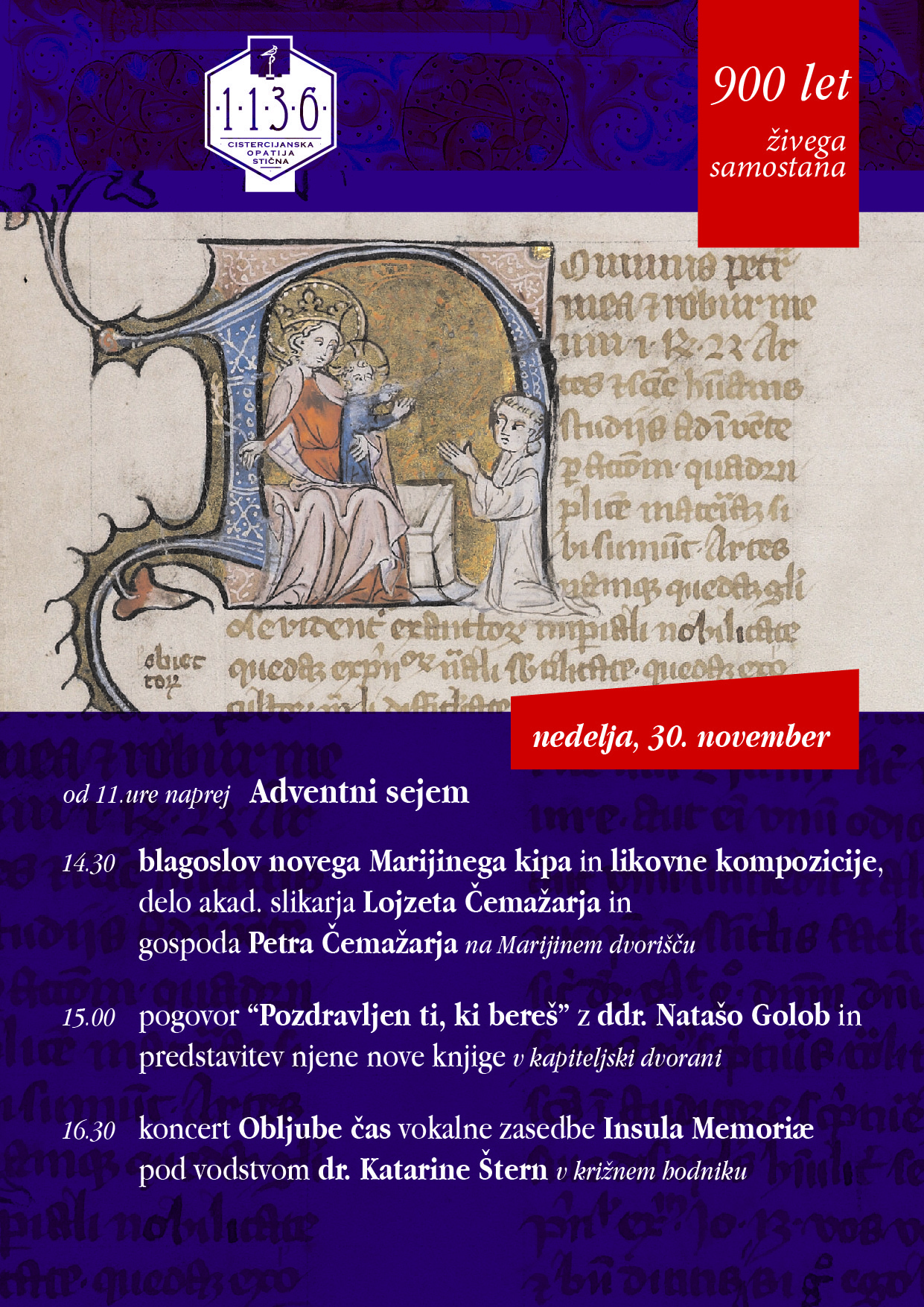 Ob 16.30 bo v križnem hodniku samostana koncert vokalne zasedbe Insula Memoriæ pod vodstvom dr. Katarine Šter.